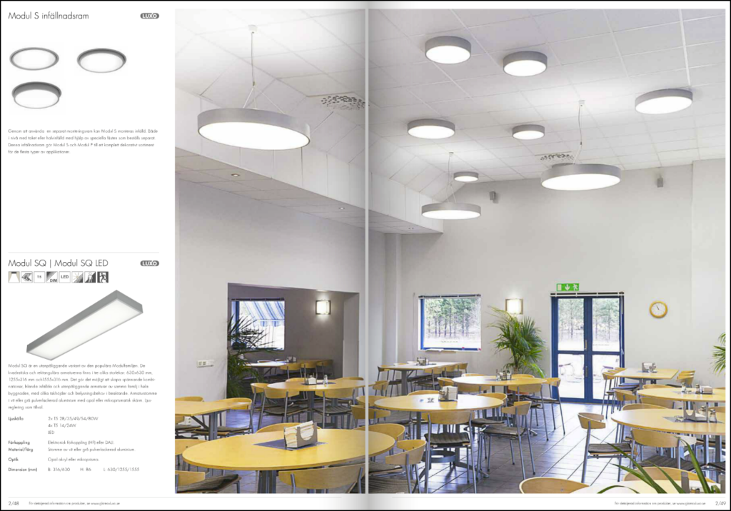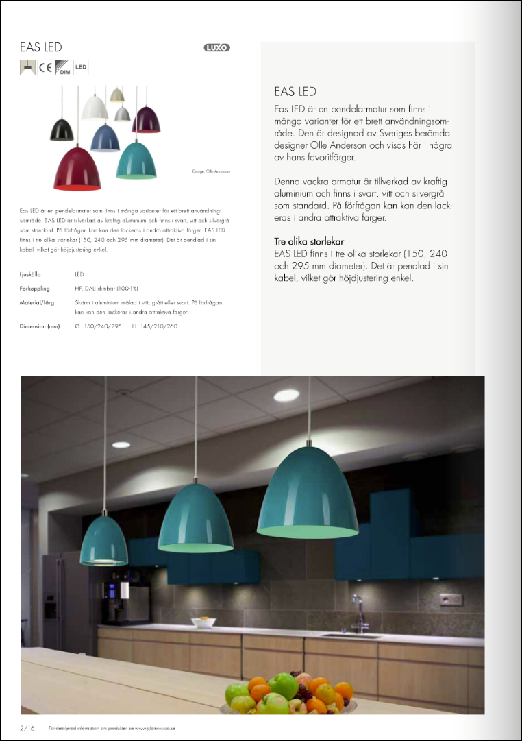 Armaturen EAS. Produktbilderna tagna i studion. Miljöbilden ett montage med studiobilder och en interiör från ett kontor i Göteborg.